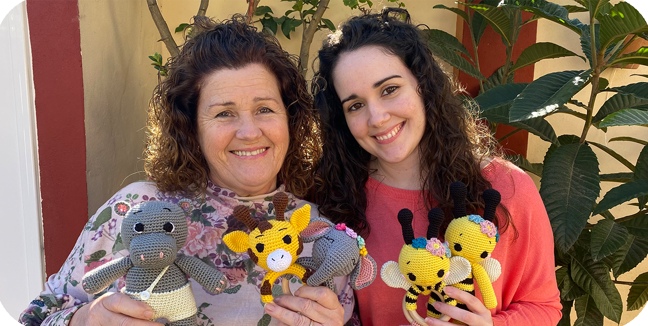 Pero no estoy sola en esto. Mi madre, que tiene unas manos mágicas para crear, se sumó a este proyecto. Ella es el arte y el corazón detrás de nuestros muñecos de apego y sonajeros.